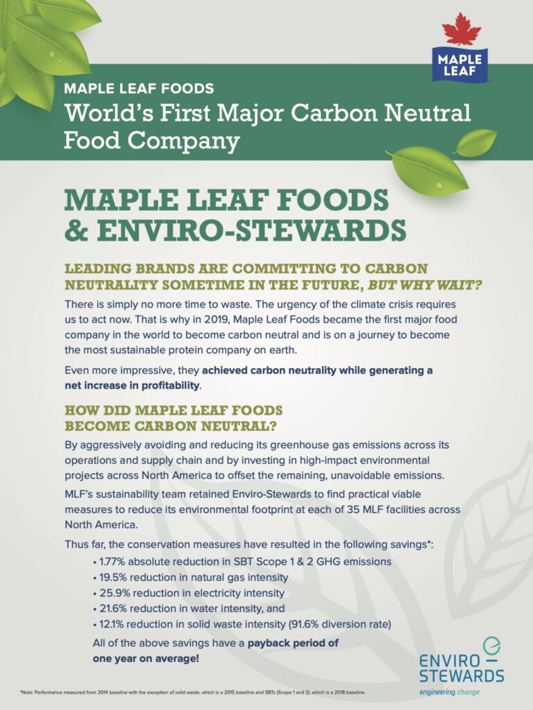 We’d like to congratulate the Maple Leaf Foods team for winning this distinguished award for becoming the first major food company to become carbon neutral!