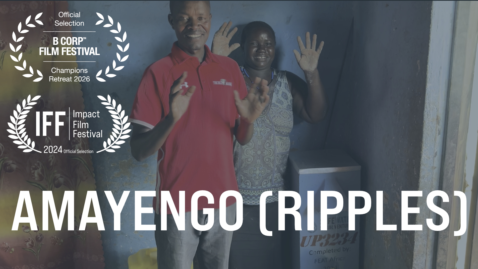 Amayengo (Ripples) tells the story of the self-propagation of safe water social ventures. We provided train-the-trainer training in 2007, and those students have gone on to help start 4 water purifier manufacturing plants in South Sudan (before the civil war there) as well as 3 manufacturing plants in Uganda. This film tells the story of the start of the newest project (in Jinga, Uganda) as well as involvement of fellow B Corp, Grosche, who were personally visiting some of the families helped through their partnership.